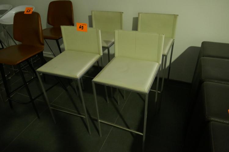 4 metalen barstoelen met zitting in witte kunstleer