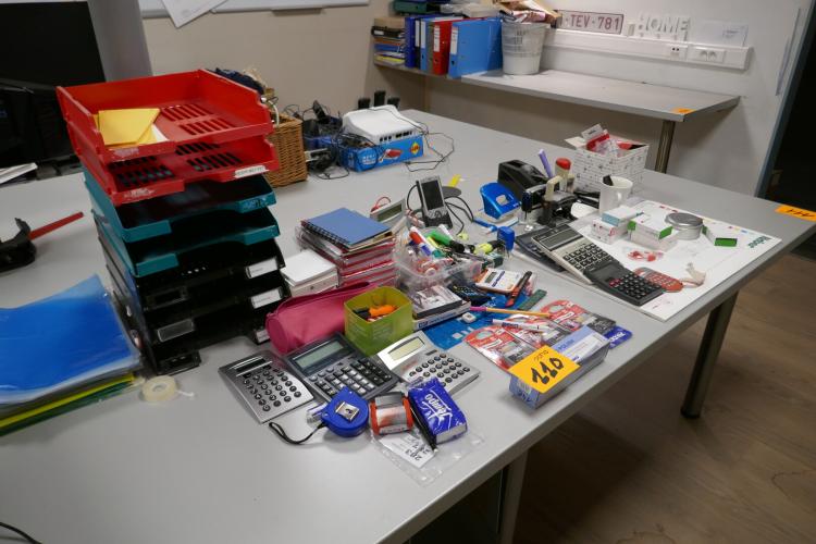 Bureaumateriaal : rekenmachines - papierbakjes - schrijfgerief - perforators enz…