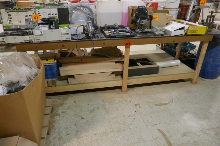 Houten werkbank met bodemschap + houtresten