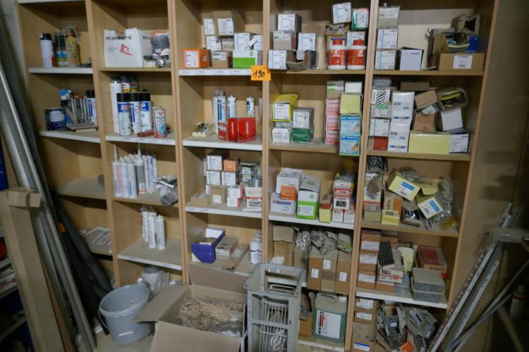 Inhoud vakkenkast : diverse schroeven - silicones - bouten - alco spray - pluggen - enz….