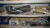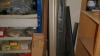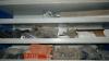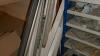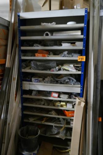 Metalen rek met inhoud : sanitair materiaal - stalen verbindingsbanden - profielen - enz..
