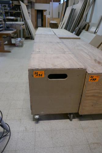 2 verrijdbare gesloten houten bakken met zwenkwielen