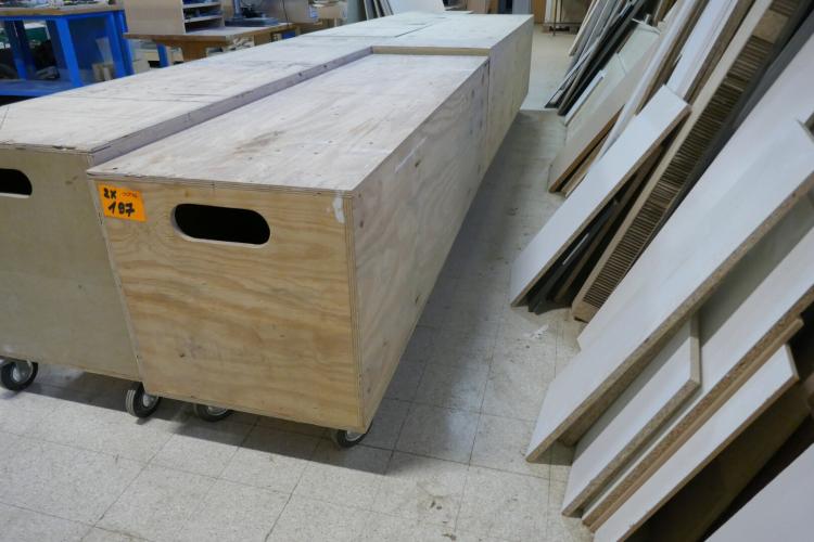 2 verrijdbare gesloten houten bakken met zwenkwielen