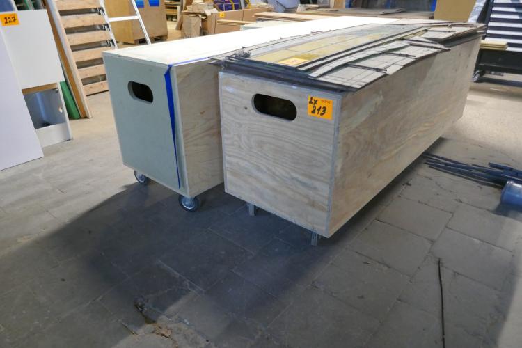 2 verrijdbare gesloten houten bakken met zwenkwielen