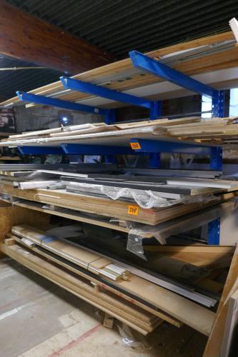 Blauwmetalen draagarmrek bestaande uit 3 staanders en 9 liggers