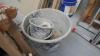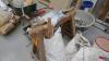 Divers stukadoor gereedschap - bakwagen op luchtband - 3 bouwschoren - zakken egalisatiemortel - 2 houten schragen - tegellijm - mortelkuipen - transport plateaukarren - enz…...