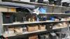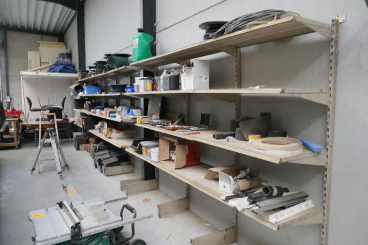 Metalen winkelrek in 2 delen met diverse legborden - metalen tafel