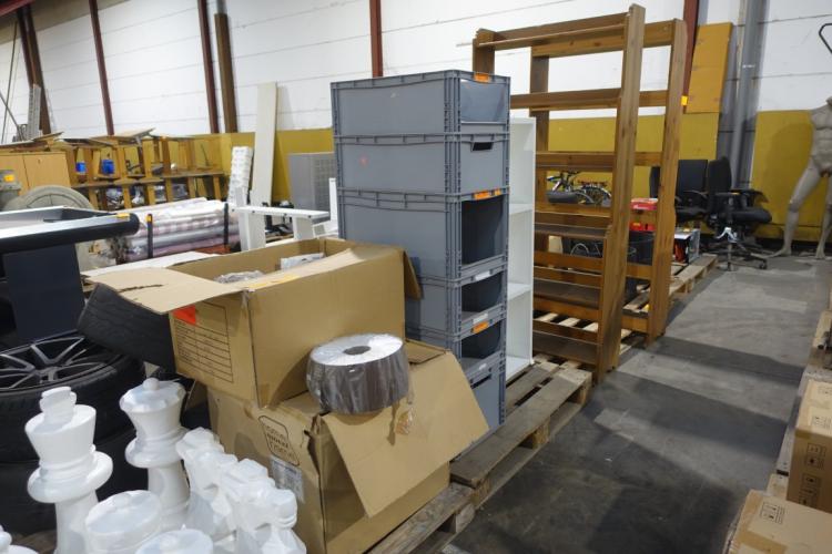 oa: houten kasten, stapelbakken, lamparmaturen,...