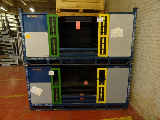 2x Metalen stapelbare metalen bak + inhoud