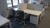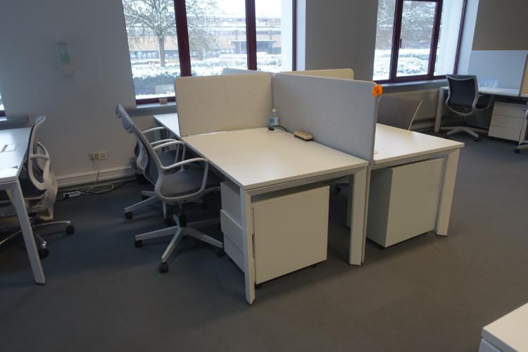 Bestaande uit 4x verrijdbare stoel, 4x ladenkast, akoestisch scherm en bureau (totale afm: 2,45m x 1,65m) , locatie: gate 39
