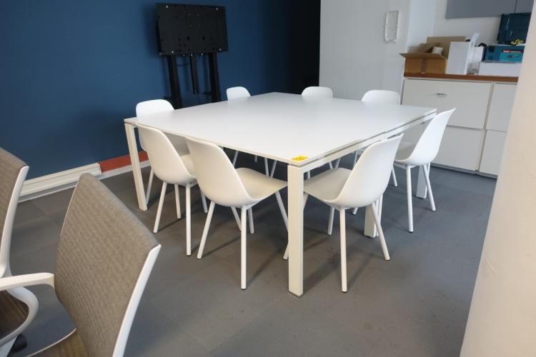 vergadertafel: 1600x1600, 8x stoel, samen met bureau l: 1600 , locatie: gate 39