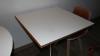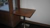 12 restauranttafels , inox voet, blad van notelaar. Blad 80x80, bladhoogte 75cm.