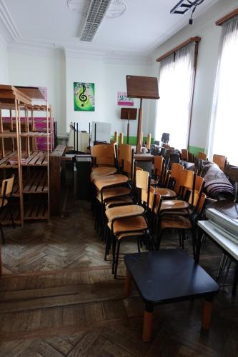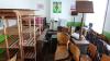 vnl tafels, stoelen, houten rekken, schildersezel,...