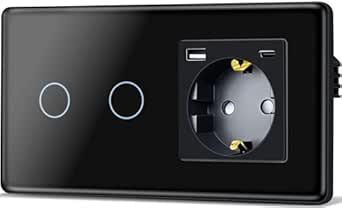 206x Ongeopend, touch-lichtschakelaar wit + zwart, TAWOIA Touch lichtschakelaar met stopcontact (MAX.20W) USB en type C, EU-standaard, 1-voudig stopcontact, 2-voudig, 1-weg inbouwlichtschakelaar met 2,5D gebogen glazen plaat, 86 x 157 mm, 116x zwart B0CXNM328F + 90x Wit B0CXP7GPHK