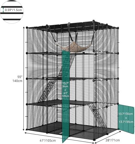 25x Ongeopend, YITAHOME Grote dierenkooi voor binnen, 4 niveaus, metaaldraad met 3 ladders, Catio met hangmat, dierenkooi voor 1 tot 3 katten, konijn, zwart, 107 x 72 x 142 cm B0CL9X4M6H