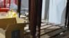 Houten tafel met wielen