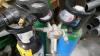 3 gasflessen met drukregelaars ( flessen zijn waarschijnlijk leeg )