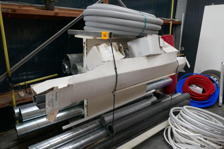 Dubbele draagarmrek met inhoud : ventilatie spiraalbuizen - flexibels - flexibele waterleiding - bogen koppelstukken