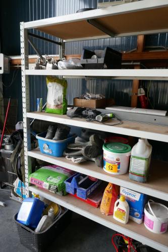 Zakken tegellijm - stukadoor produkten - laarzen - metalen beugels - enz…