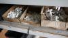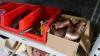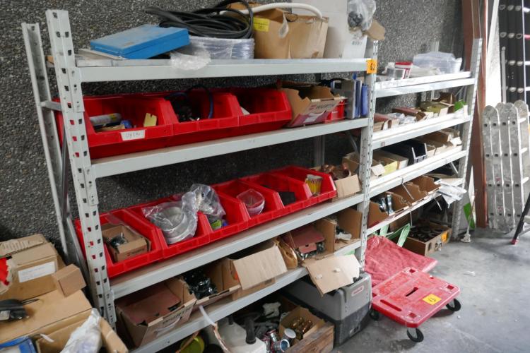 Magazijnrek met inhoud : rangeerbakjes met koppelstukken, beugels, bevestigingsmateriaal enz….