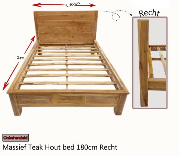 onbehandelde teak hout bed, afmeting: 1800x2000mm met rechte hoofdbord