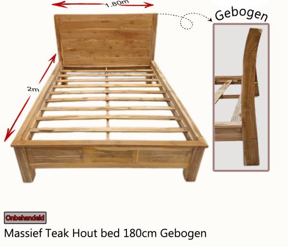 onbehandelde teak hout bed, afmeting: 1800x2000mm met gebogen hoofdbord