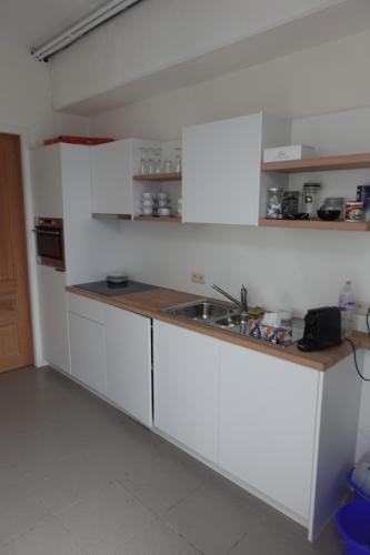 vv: microgolfoven, glazen, spoelbak, koffiemachine, vuilbak,,,