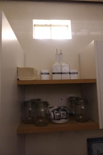 vv: radio, koffiemachine, glazen, stoel, houten tafel...