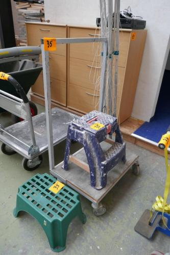 Stalen plateauwagen - wasrek - plastieken opstapkrukjes