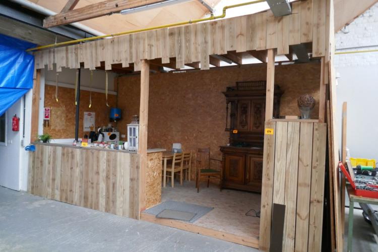Houten bar volledig gemaakt in osb-platen met overkapping