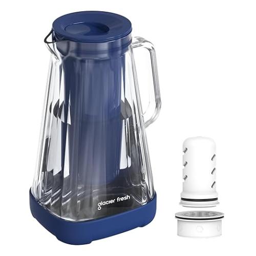 Ongeopend, ok, GLACIER FRESH Glazen waterfilterkan, 1 x actieve kool + 1 x ultrafiltratiefilter, vermindert chloor, fluoride, kalkaanslag, zware metalen zoals lood, koper, blauw, B0CZDDJ2LL