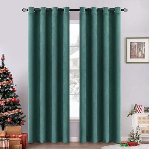 Ongeopend, ok, EMEMA 2 Panelen Soft Velvet Thermisch Verduisteringsgordijnen Temperatuurregeling Eyelet Gordijnen voor Slaapkamer Woonkamer Elegante Decoratie 140 x 245 cm Donkergroen, B09LSRPT4M