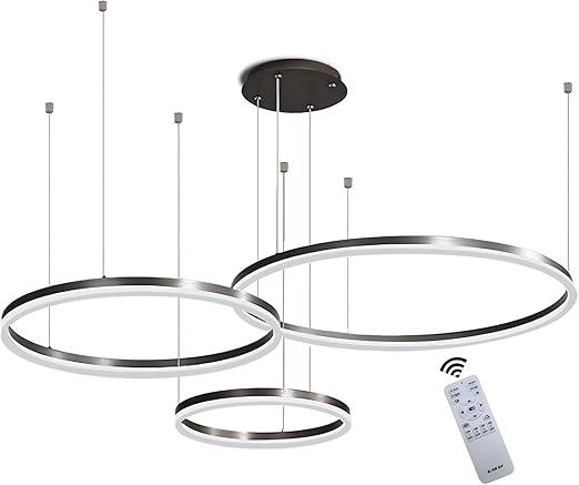 Ongebruikt, getest en werkend, volledig, ok, Wayluoung LED Metalen Kroonluchter | 3 Cirkels 40+60+80cm | 90W Ringen Plafond Hanglamp, Dimbare Afstandsbediening 3000-6000K, Acryl Schaduw Hanglamp, Woonkamer Slaapkamer Foyer Eetkamer Keuken, B0CWY3ZC1G