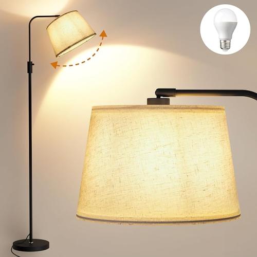 Ongebruikt, getest en werkend, compleet, Vloerlamp Woonkamer Dimbaar 3 Kleurtemperaturen 160 cm Vloerlamp voor Slaapkamer E27 Booglamp Vloerlamp met Stoffen Kap Leeslamp Beige, B0D45NML1D
