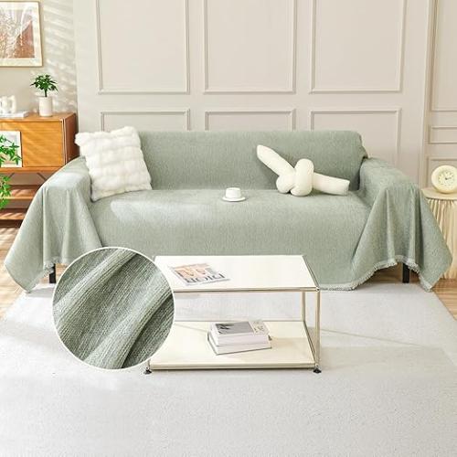 Ongeopend, in seal, TAOTAOGO Bankhoes voor 3-4 zits bank, Wasbare chenille bankhoes met franjes, Voor L-vormige hoekbank, Het hele jaar te gebruiken, F Groen 180x380 cm, B0DSV3F1XG