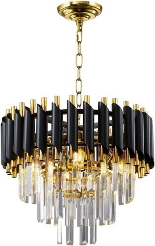 Ongeopend, in seal, Seenvlog Moderne LED kristallen hanglamp, zwarte en gouden kristallen kroonluchter, 3-laags druppelvormige kroonluchter, plafondlamp voor de eetkamer, D40cm E14x4 LED-lampen, B0C5T4B24Z