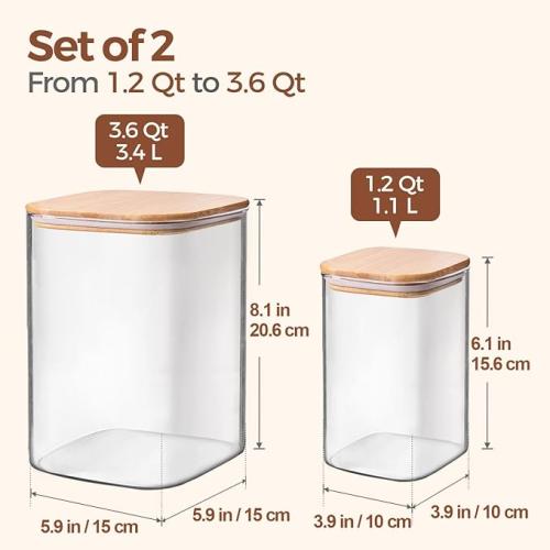 Ongebruikt, volledig, ok, ComSaf glazen voedselcontainers, 3,6 liter/1,2 liter glazen bloem- en suikercontainers met luchtdichte deksels, grote vierkante potten met bamboe deksels voor rijst, pasta, haver, granen, koekjes, snacks, snoep, B0BFBBV4VG