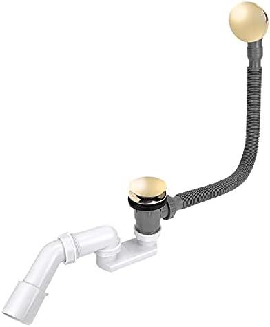 Ongeopend, Goudkleurige afwerking voor de afvoer van het bad, lange flexibele sifon voor de badkamer, B0969M5NCF