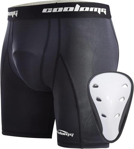 COLOMG Heren diepe bescherming suspensorium compressiebroek ondergoed met cup voor vechtsport