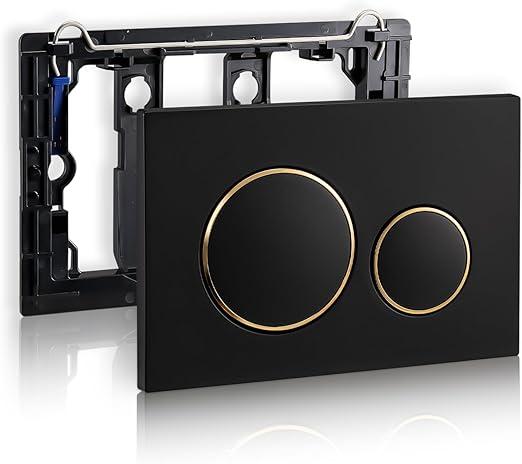 Ongebruikt, volledig,verpakking ontbreekt,ok, Empyreal Bedieningsplaat voor Toiletreservoir, Onderdelen voor oud model, Geschikt en compatibel met Geberit Sigma 01 Bedieningsplaat 115770115 met Dubbele Spoeling, 1 stuk (Zwart & Gouden Cirkels),B0D6377KQ9