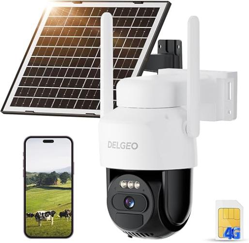 Ongeopend, ok, Delgeo 4G AOV Outdoor AI-camera op zonne-energie met 360°-zwenk- en kantelfunctie, PIR-portretdetectie, kleur-nachtzicht, waterdicht IP66-design, 6000 mAh met hoge capaciteit, geen wifi nodig, B0F62RH3TX