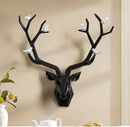 Ongeopend, YHRJ Papercraft 3D hertenkop, wanddecoratie, sculptuur, hertenkop 55x40cm, voor binnenruimtes, hangend cadeau, geometrische dierenkop, milieuvriendelijke hars, zwart, B08FJ3KXT6