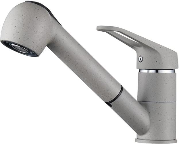 Ongebruikt, ok, compleet, Auralum keukenkraan, granieten keukenaccessoires met uitschuifbare hogedruksproeikop, mengkraan met 2 waterstralen, 360° draaibare wastafelkraan, grijs, B0C5DBSXPY