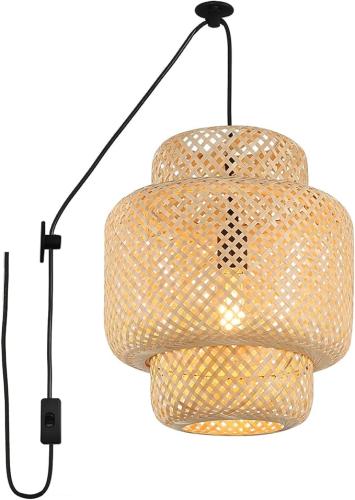 Ongebruikt, getest en werkend, volledig, ok, Industriële kroonluchter van handgeweven rotan, moderne hanglamp van riet met trekkoord voor de keuken, bamboe plafondlamp voor woonkamer, eetkamer, slaapkamer en kinderkamer,B09D74H6QD