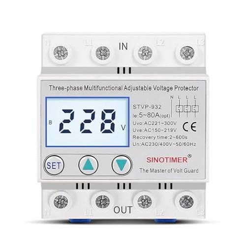 Ongeopend, ok, Sinotimer STVP-932 DIN-rail instelbare AC 230V/400V 3-fasen overspanningsbeveiliging Auto Reconnect, B0DLB5TY2L