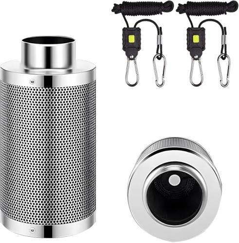 Minieme gebruikssporen, volledig, ok, SunStream Grow Actieve koolfilter, 10,2 cm, met voorfilter van Australische natuurlijke kolen, geurcontrole voor indoor-teelt, inline ventilatoren en kweektent-ventilatie, B0D48YF4LP