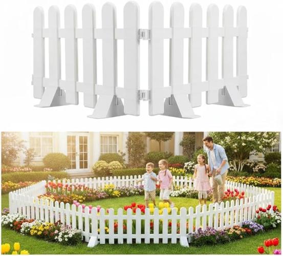 Ongebruikt, volledig, ok, originele verpakking ontbreekt, 4 x Supvox Tuinhekwerk (2-delig) met randen voor witte plastic tuinhekken, tuinpoorten met 4 voetstukken voor voortuin, boom, gazon en bloemperken, B0CX98CPC4