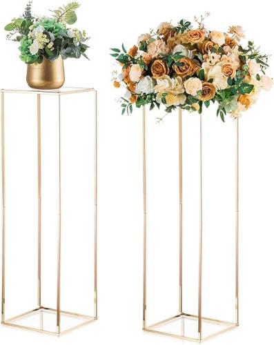 Gebruikssporen, ok, Gouden Bloemenstandaard Bruiloft Middenstukken: 2 Stuks Metalen Kolomvazen met Acrylpaneel Hoge Vloervaas 100cm Rechthoekige Vazen voor Middenstukken Geometrisch Bloemenrek voor Tafel Middenstuk Feest Woondecoratie,B0B3T77DS4
