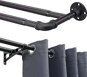 Ongeopend, INFLATION Industriële dubbele gordijnstangen, matzwarte gordijnroedes voor ramen, 74-269 cm, 2,5 cm dubbele gordijnroedes voor ramen, verstelbare gordijnstangset , B0BJTHF163