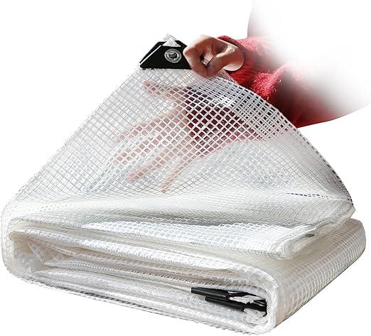 Ongeopend, in seal, STARPYNG Afdekzeil, duurzaam, waterdicht, transparant netzeil, 140 g/m², groot, slijtvast zeil, geschikt voor de tuin, helder/wit, 4,9 x 6,1 m, B0CN6KMXJ4
